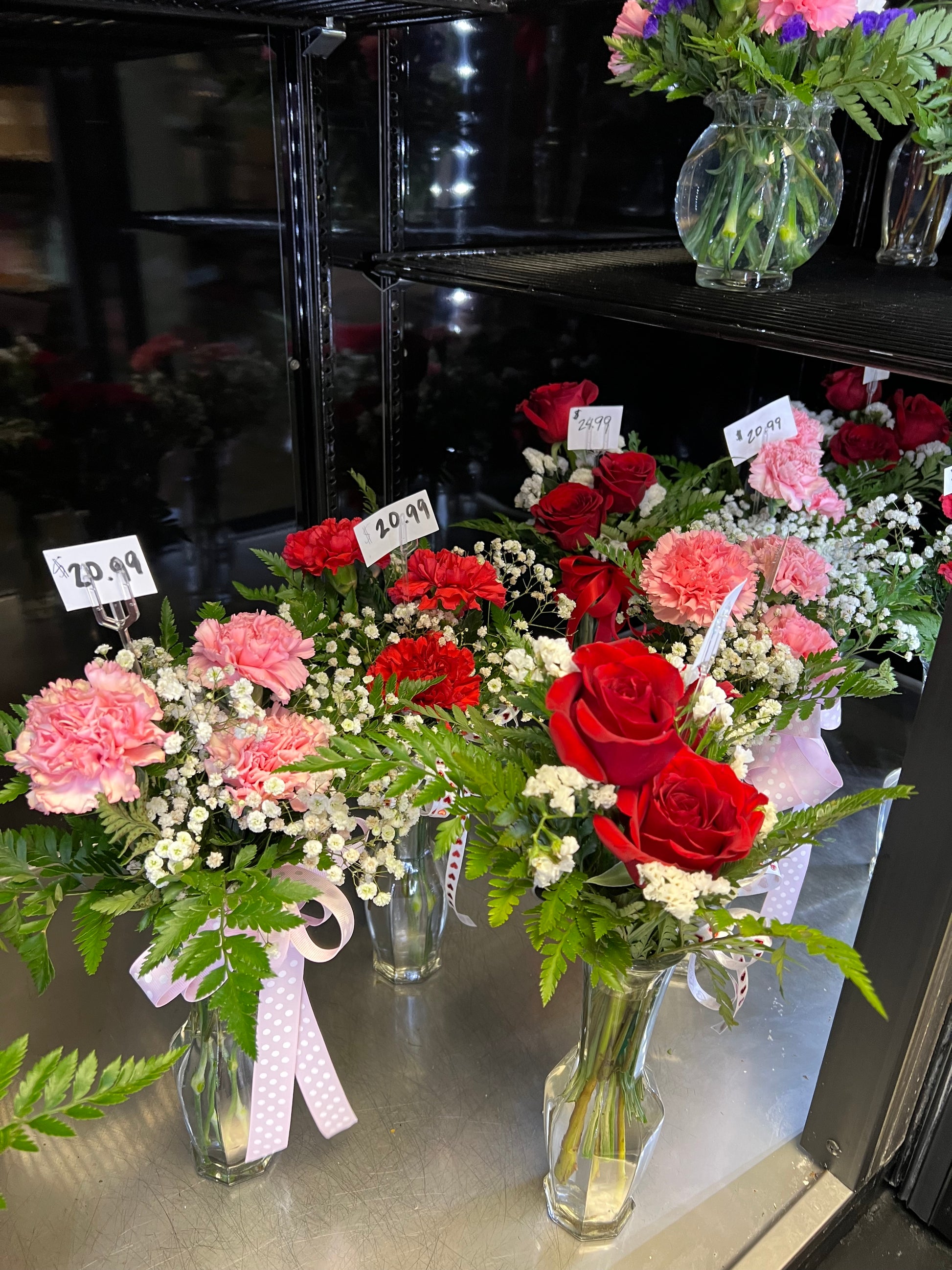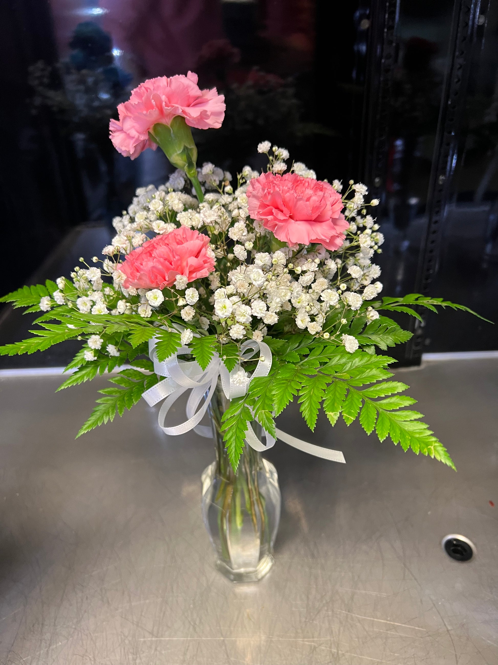 Fresh Floral Vase-3 Carnations with Babies Breath-$20.99