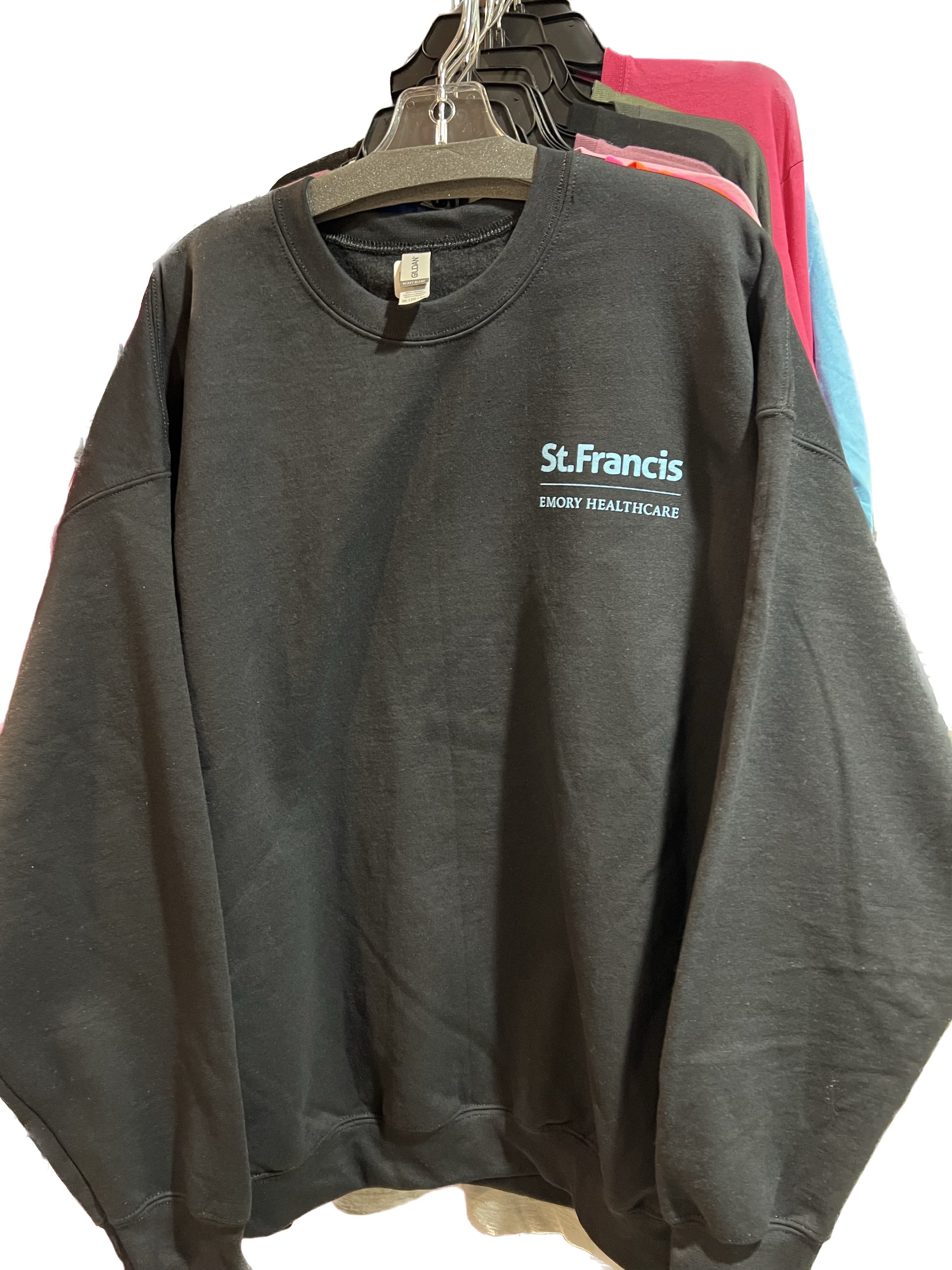 Logo Apparel Black Crew Neck Sweatshirt with lt. blue screen print logo XXL