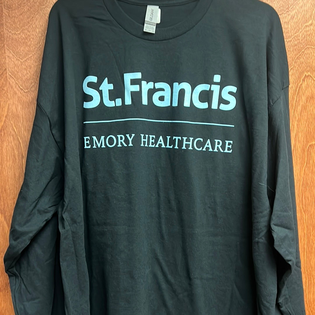 Logo Apparel Small Black Long Sleeve T with Large Blue Screen Print