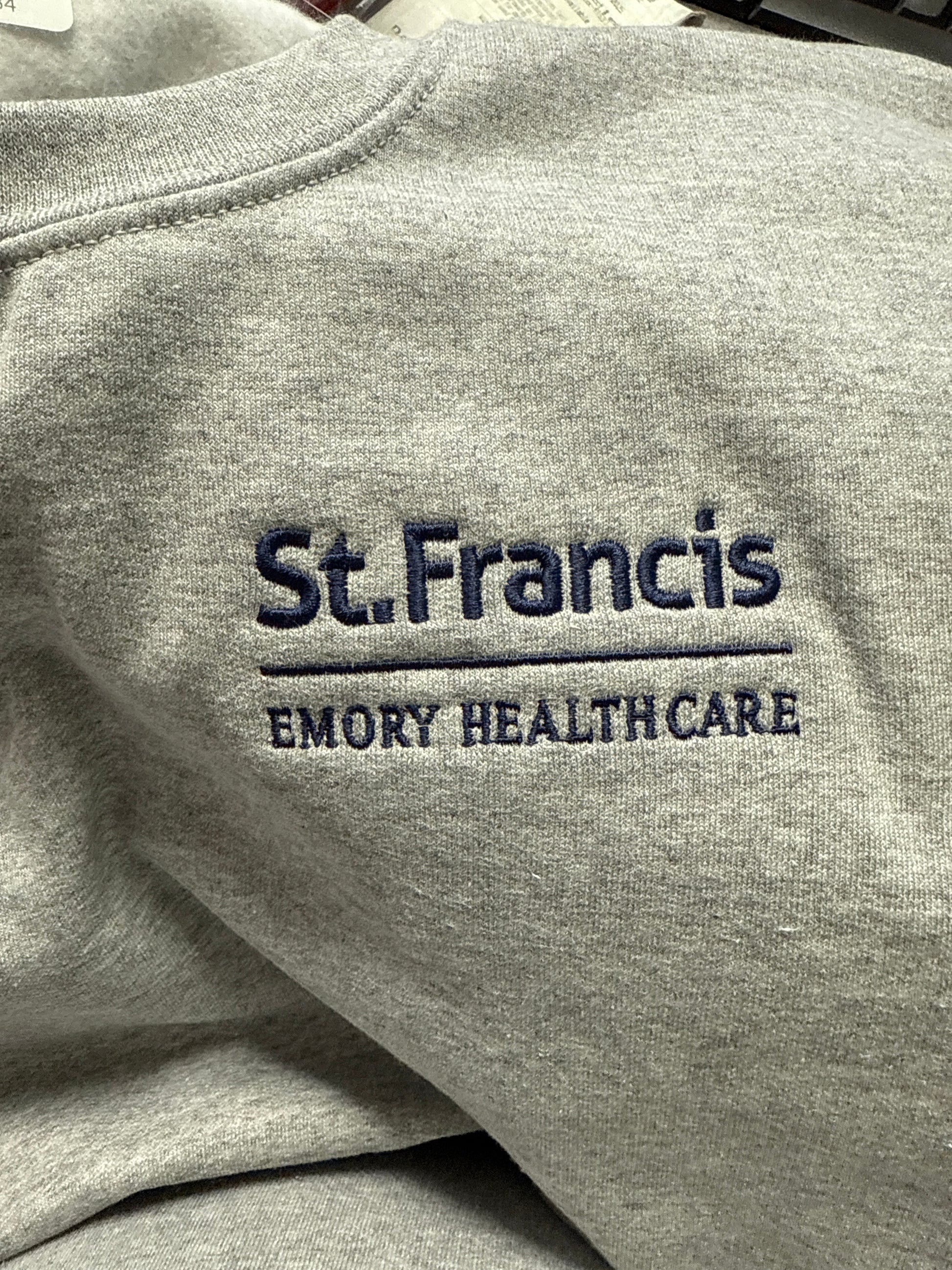 Logo Apparel- Large Embroidered Grey Crew Neck Sweatshirt Large