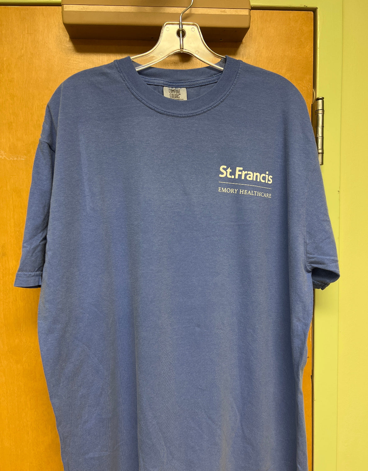 Logo Apparel-M Blue Short Sleeve T-shirt with white screen print